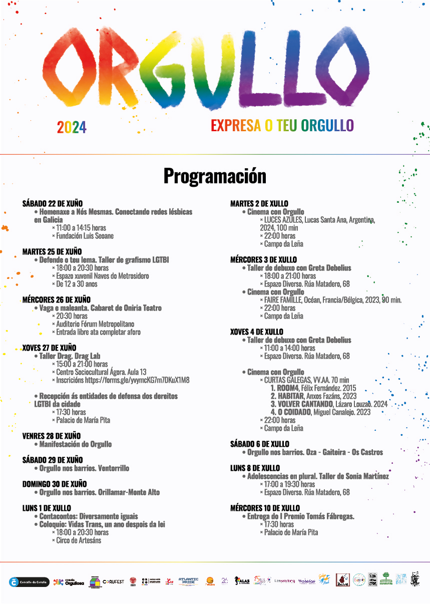 Este ano o ATLANTIC PRIDE contará coas actuacións estelares de Nebulosa, Chanel e Rosa López na semana do 7 o 14 de Xullo, pero na cidade celebrase xa eventos culturais e lúdicos durante o mes da man do Concello e de ALAS Coruña.